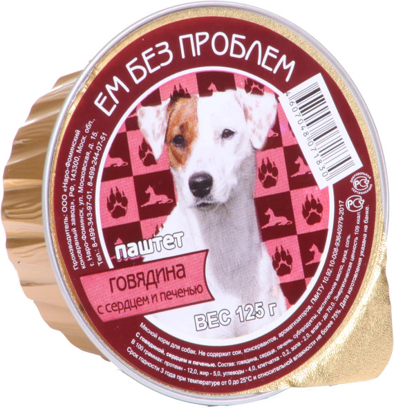 Ем без проблем Паштет для собак «Говядина с сердцем и печенью»
