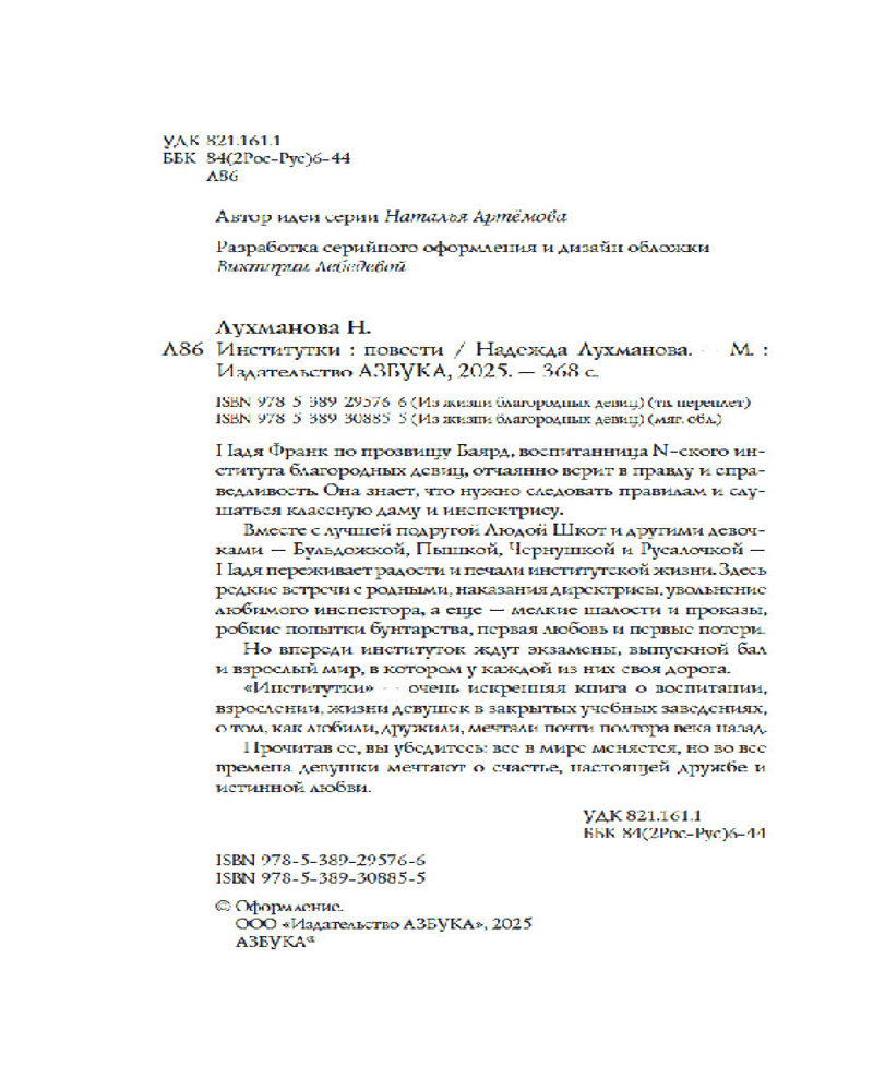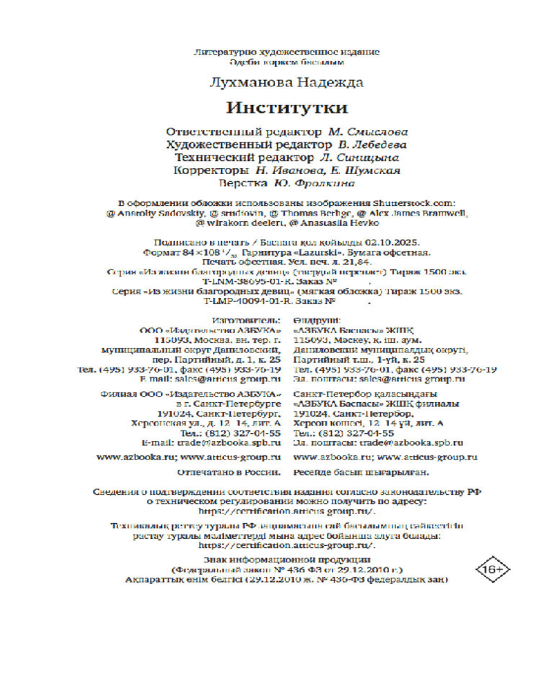 💳 Оплатить за товар можно при получении 🇰🇿 Есть бесплатная доставка по Казахстану 🎁 Копите бонусы с каждой покупки Серия: Из жизни благородных девиц (м) «Институтки» — очень искренняя книга о воспитании, взрослении, жизни девушек в закрытых учебных заведениях, о том, как любили, дружили, мечтали почти полтора века назад. Прочитав ее, вы убедитесь: всё в мире меняется, но во все времена девушки мечтают о счастье, настоящей дружбе и истинной любви. |