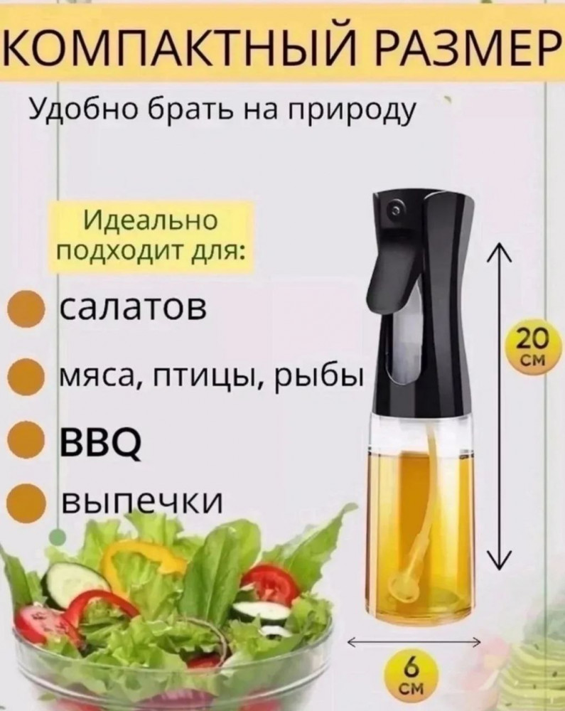 💳 Оплатить за товар можно при получении 🇰🇿 Есть бесплатная доставка по Казахстану 🎁 Копите бонусы с каждой покупки Распылитель для масла, уксуса и соусов. Удобный кухонный распылитель, который позволяет равномерно наносить масло, уксус или соус на продукты. Идеально подходит для жарки, запекания, салатов и гриля. Благодаря тонкому распылению вы экономите ингредиенты и получаете более полезное и лёгкое приготовление блюд. |