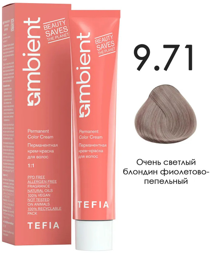Tefia Крем-краска для волос перманентная, оттенок 9.71 Очень светлый блондин фиолетово-пепельный