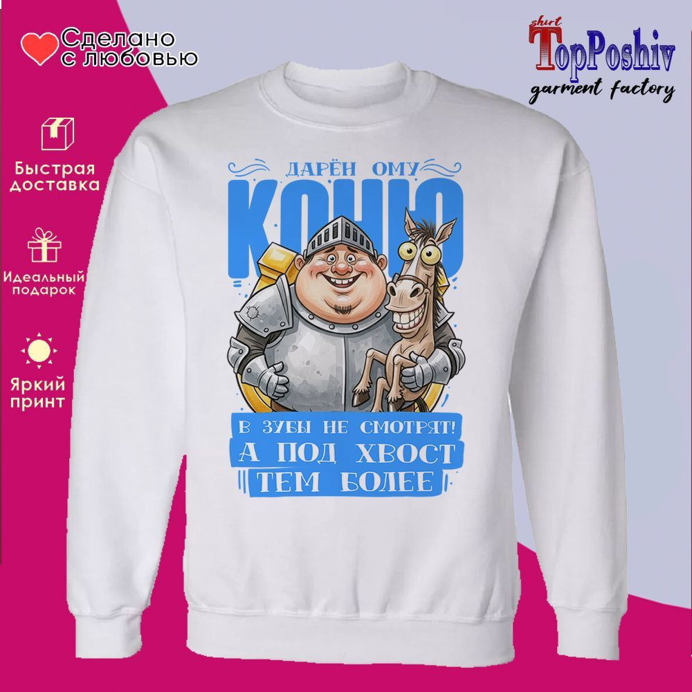 TopPoshiv Свитшот с принтом «Одаренному коню в зубы не смотрят муж»