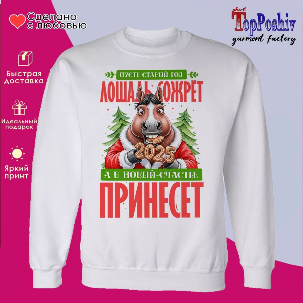 TopPoshiv Свитшот с принтом «Пусть старый год лошадь сожрет»