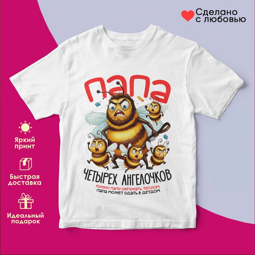 TopPoshiv Футболка с принтом «Папа четырех ангелочков»