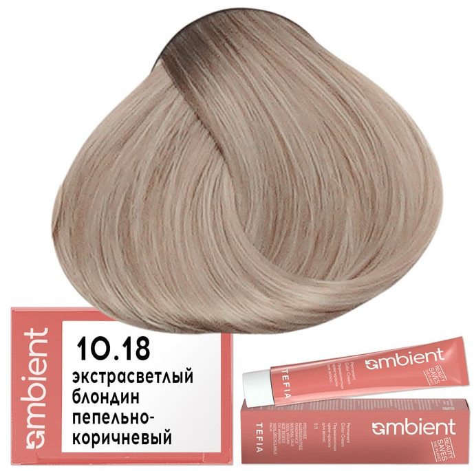 Tefia Крем-краска для волос перманентная, оттенок 10.18 Экстра светлый блондин пепельно-коричневый
