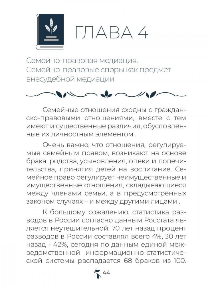 💳 Оплатить за товар можно при получении 🇰🇿 Есть бесплатная доставка по Казахстану 🎁 Копите бонусы с каждой покупки Серия: Юридическая литература Книга основана на многолетней адвокатской и медиативной практике урегулирования семейных споров переговорным путем. Она будет полезна всем, кто так или иначе сталкивается с семейными конфликтами: адвокатам, частнопрактикующим юристам, психологам, медиаторам, а также студентам ВУЗов при изучении вопросов семейного права, конфликтологии, психологии конфликта. Уникальность формата книги состоит в её практической ориентированности. Авторами дается пошаговая инструкция и алгоритм действий профессионала-переговорщика при работе с семейным конфликтом, приводятся конкретные примеры из практики, образцы документов, которые составляет медиатор. |