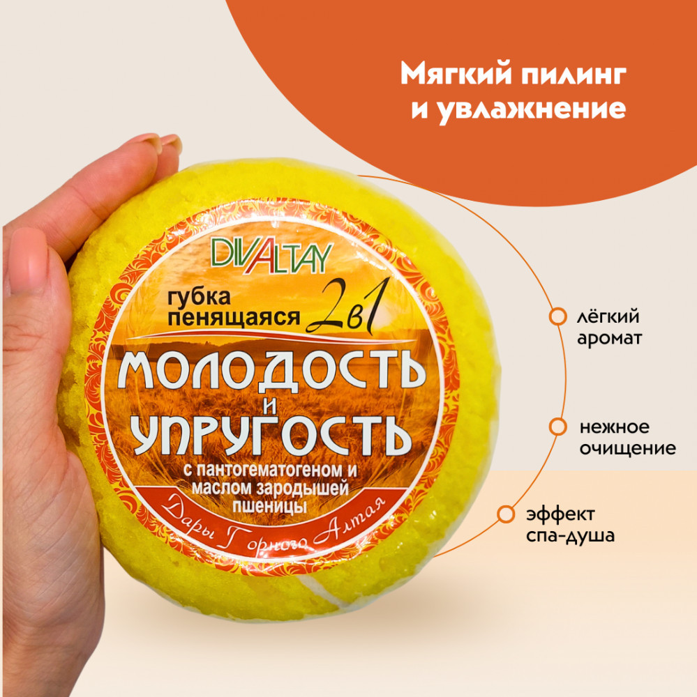 • основой состава губки является ценнейший продукт Алтая — пантогематоген; с его полезными свойствами для кожи знаком каждый, а именно: сохранение и возвращение молодости, упругости и эластичности, ускорение регенерации кожных покровов, активизация обновления на клеточном уровне;