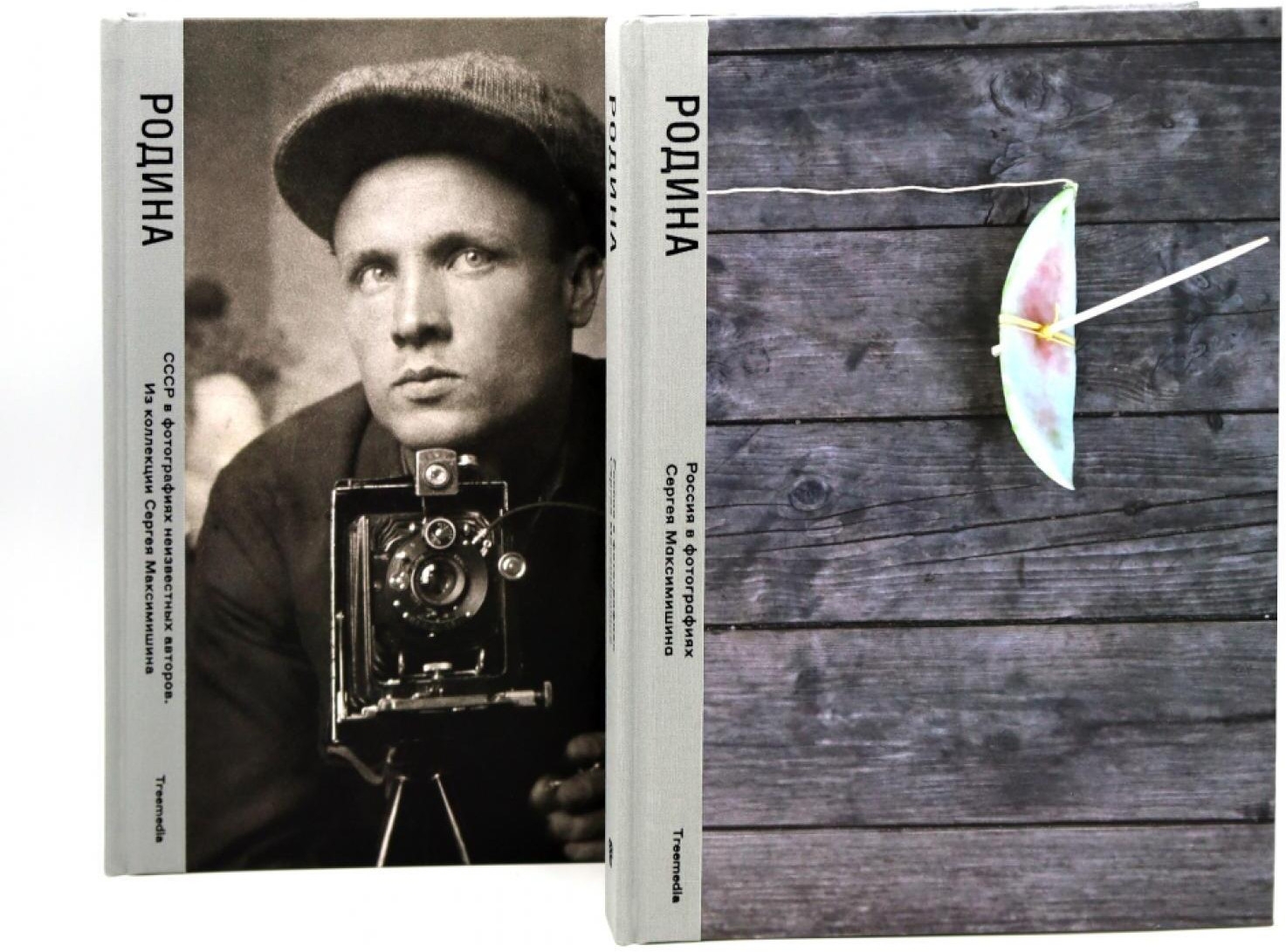 Комплект Сергея Максимишина «Родина» состоит из двух томов. В первый том вошли работы неизвестных авторов из моей коллекции «народной» фотографии: снимки из семейных альбомов, стенгазет, ведомственных отчетов, памятных альбомов. Фотографии в книге разбиты на главы по хронологии: от революции до перестройки. Второй том дилогии состоит из фотографий, снятых мною в России с 1996 по 2022 год. Часть из них снята в рамках редакционных командировок для таких изданий, как «Известия», «Огонек», «Русский репортер», GEO, Stern и другие; часть — мои собственные проекты.
