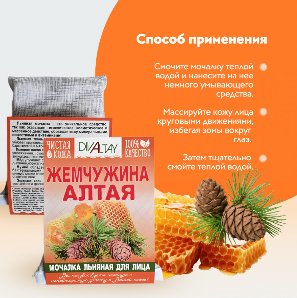 Льняная мочалка для лица «Жемчужина Алтая» — это идеальное средство для нежного ухода и придания сияния коже лица. Сочетание мягких льняных волокон и экстракта жемчуга обеспечивает эффективное и деликатное очищение поры от грязи, избытка кожного жира и других загрязнений.