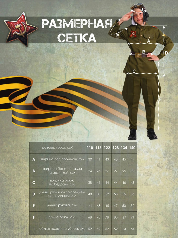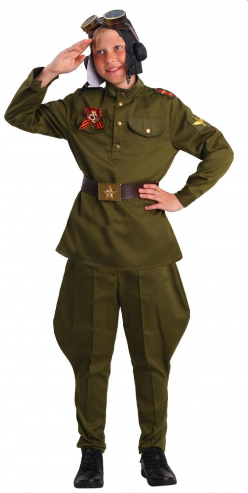 Костюм Военного Летчика превратит любого мальчика в отважного героя и настоящего аса пилотирования. Актуальный образ к 23 февраля и 9 мая позволит детям не забывать об историческом прошлом своей страны. Костюм включает в себя гимнастерку, ремень, брюки, шлемофон, очки и орден.