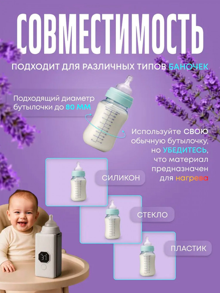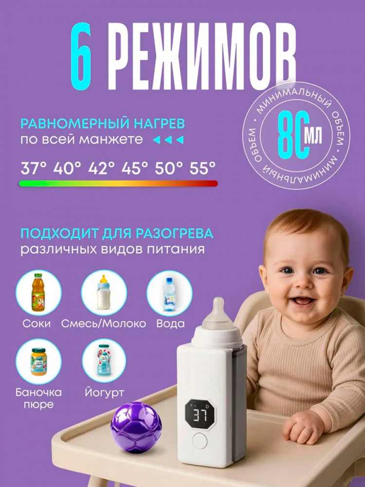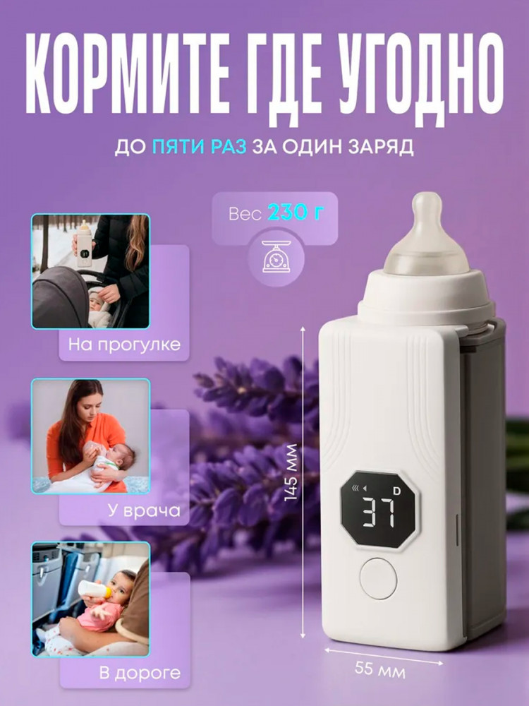 💳 Оплатить за товар можно при получении 🇰🇿 Есть бесплатная доставка по Казахстану 🎁 Копите бонусы с каждой покупки Портативный подогреватель бутылочек — это удобное устройство, позволяющее быстро и равномерно разогреть детское питание в любом месте и в любое время. Он оснащён шестью режимами работы, что даёт возможность подобрать оптимальную температуру в зависимости от типа продукта и потребностей малыша. Мощный аккумулятор обеспечивает длительное время автономной работы, поэтому прибор можно уверенно использовать в дороге, на прогулке или в путешествиях без подключения к сети. |