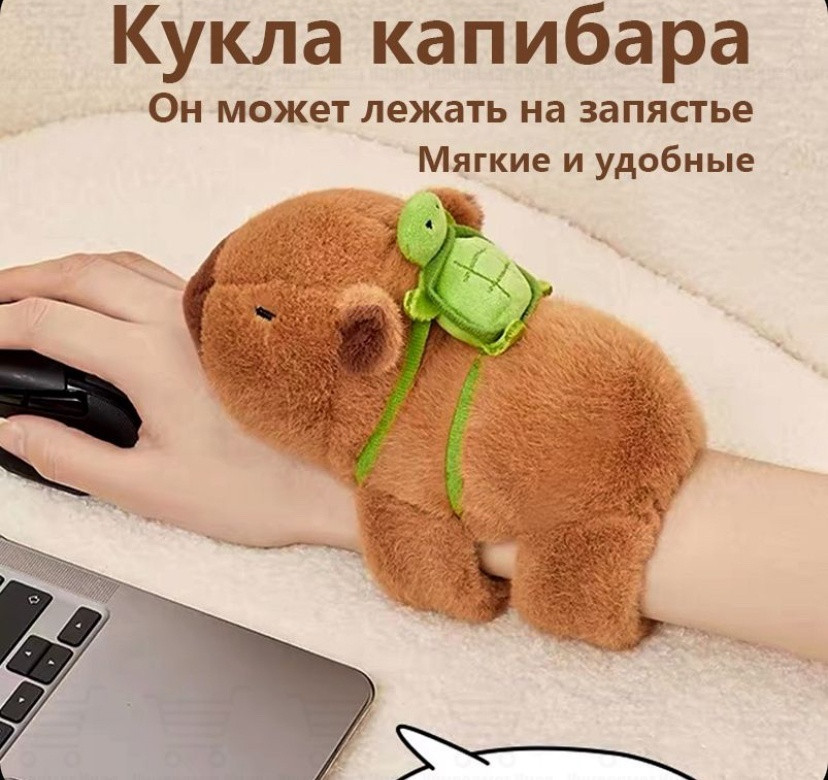 Мягкая игрушка-браслет «Капибара с рюкзаком»+42
