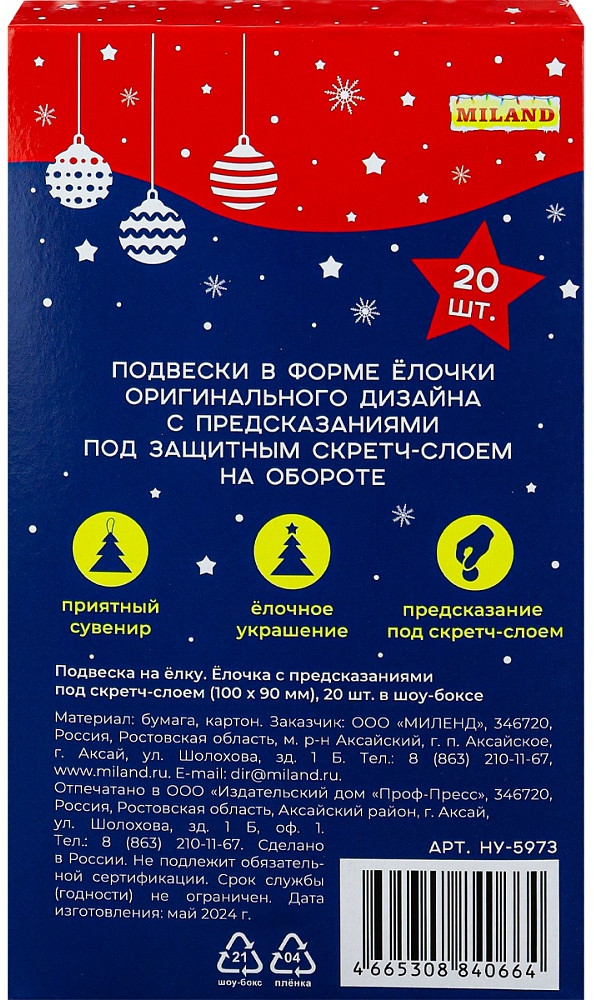 💳 Оплатить за товар можно при получении 🇰🇿 Есть бесплатная доставка по Казахстану 🎁 Копите бонусы с каждой покупки Подвеска с предсказанием, спрятанным под скретч-слоем, станет сюрпризным моментом праздничного вечера или приятным дополнением к подарку. Подвеска со скретч-слоем подскажет в шуточной форме, что же ждёт вас в 2025 году. |