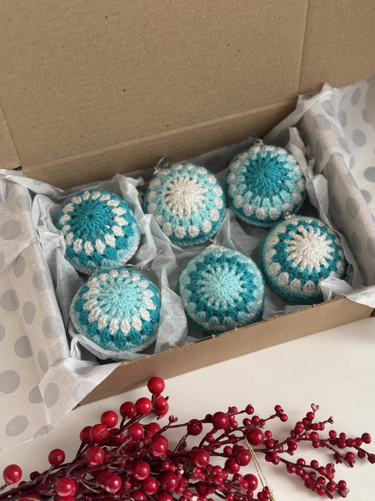 Уютные, мягкие и абсолютно безопасные украшения для вашей новогодней ёлки. Каждый шар связан вручную — с любовью.