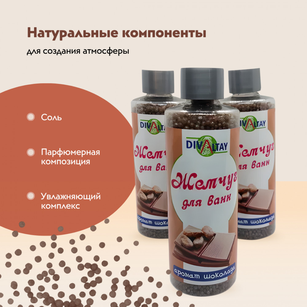 Жемчуг для ванны «Аромат шоколада» — это идеальное средство для создания атмосферы солнечного заряда энергии и витаминов в вашей ванной. Добавьте несколько столовых ложек жемчуга в теплую воду, и он растворится, наполняя ванную приятным ароматом спелой облепихи.