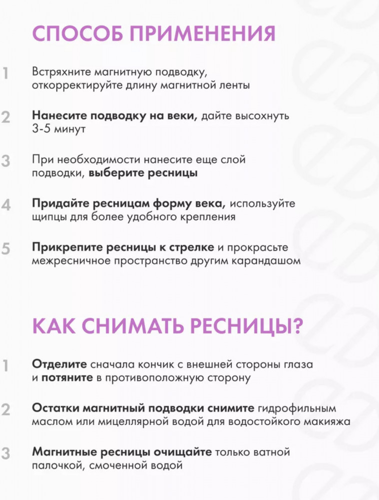 💳 Оплатить за товар можно при получении 🇰🇿 Есть бесплатная доставка по Казахстану 🎁 Копите бонусы с каждой покупки Преобразите свой взгляд с магнитными ресницами Esya Eyes, которые сделают ваш макияж поистине незабываемым! В комплект входят 3 пары ресниц с пинцетом и магнитной подводкой, что делает их идеальными для быстрого и аккуратного нанесения. Также в комплекте идет гидрофильное масло для деликатного снятия макияжа. Материалы гипоаллергенны и подходят даже для чувствительных глаз. |