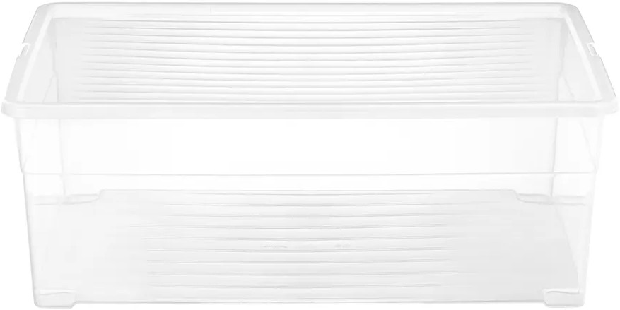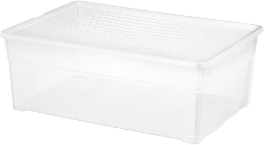 Универсальный ящик от El Casa предназначен для организации хранения вещей дома, в офисе и на даче. Подходит для эстетичного хранения на стеллаже. Размер коробки — 56×38×20 см, объём ёмкости — 34 литра. Размер дна — 50.7×33 см. Размер без крышки — 56×37.3×19.8 см. Крышка фиксируется за счёт 2 прямоугольных отверстий по бокам, которые надеваются на небольшие выступы на контейнере. Органайзер изготовлен из прочного пищевого пластика — полипропилена, который не содержит бисфенол А и другие вредные вещества. Он не впитывает посторонние ароматы и устойчив к влаге, благодаря чему обеспечит сохранность любого содержимого. Благодаря прозрачным стенкам вы сможете легко следить за наполнением.