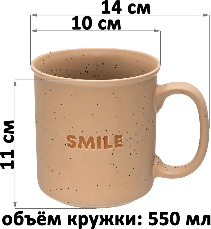 💳 Оплатить за товар можно при получении 🇰🇿 Есть бесплатная доставка по Казахстану 🎁 Копите бонусы с каждой покупки Кружка «Улыбайся» от Elan Gallery предназначена для эстетичной сервировки вашего стола. Размер изделия — 14×10×11см, объём — 550 мл. Имеет песочно-коричневую поверхность в чёрную крапинку и украшена рельефной английской надписью «Smile» — «Улыбайся». Выполнена из высококачественного фарфора. Он не впитывает цвет напитков и легко отмывается, благодаря чему надолго сохраняет свой оттенок. Кофейная кружка поможет вам провести множество приятных завтраков с капучино и латте, а также уютные чайные вечера с конфетами, вафлями, другими десертами и сладостями. |