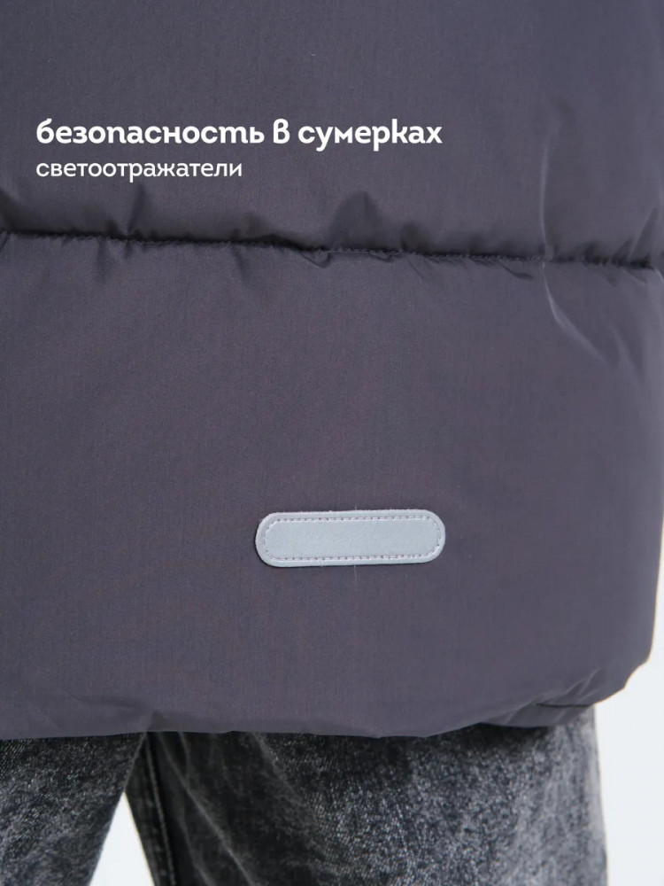 Продуманный комфорт обеспечивают многозональный подклад: тёплый флис в верхней части и в капюшоне, а внизу — лёгкий полиэстер, который снижает общий вес изделия и не стесняет движения. Центральная молния с изнаночной стороны закрыта ветрозащитной планкой — это помогает удерживать тепло и защищает от продувания во время прогулок и поездок.