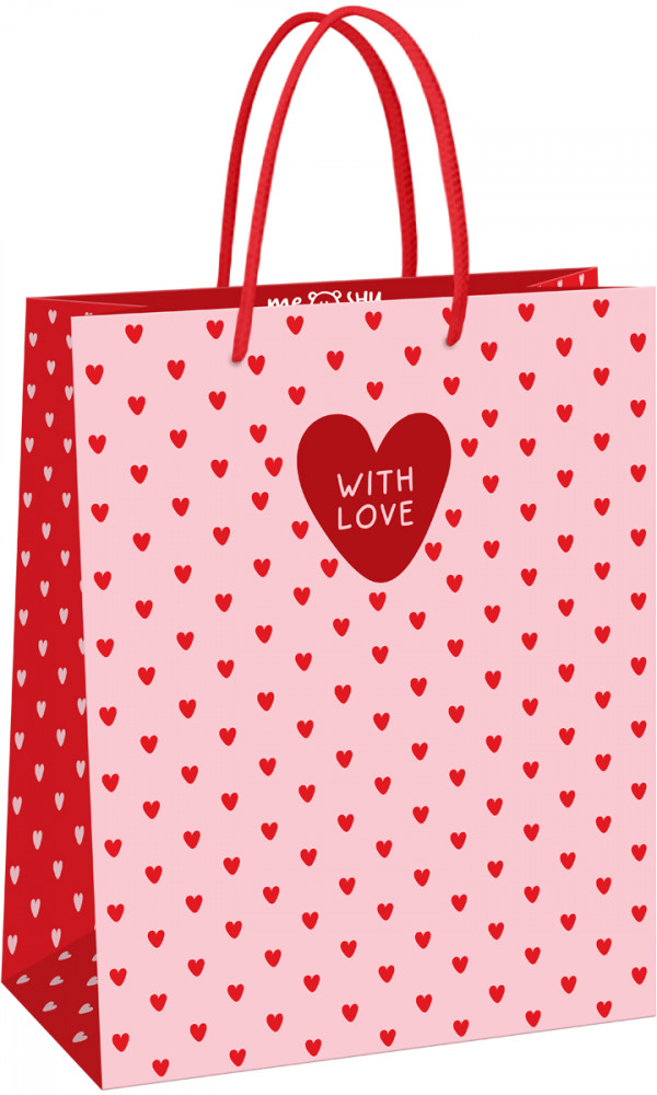 Подарочный пакет Meshu «Heart pattern» — беспроигрышный способ преподнести подарок красиво. Изготовлен из плотного мелованного картона с матовой ламинацией. Пакет станет идеальным выбором для тех, кто хочет выразить свои чувства. На лицевой стороне пакета изображен узор в виде сердец. Цветовая гамма включает в себя розовый и красный цвета, которые ассоциируются с любовью.