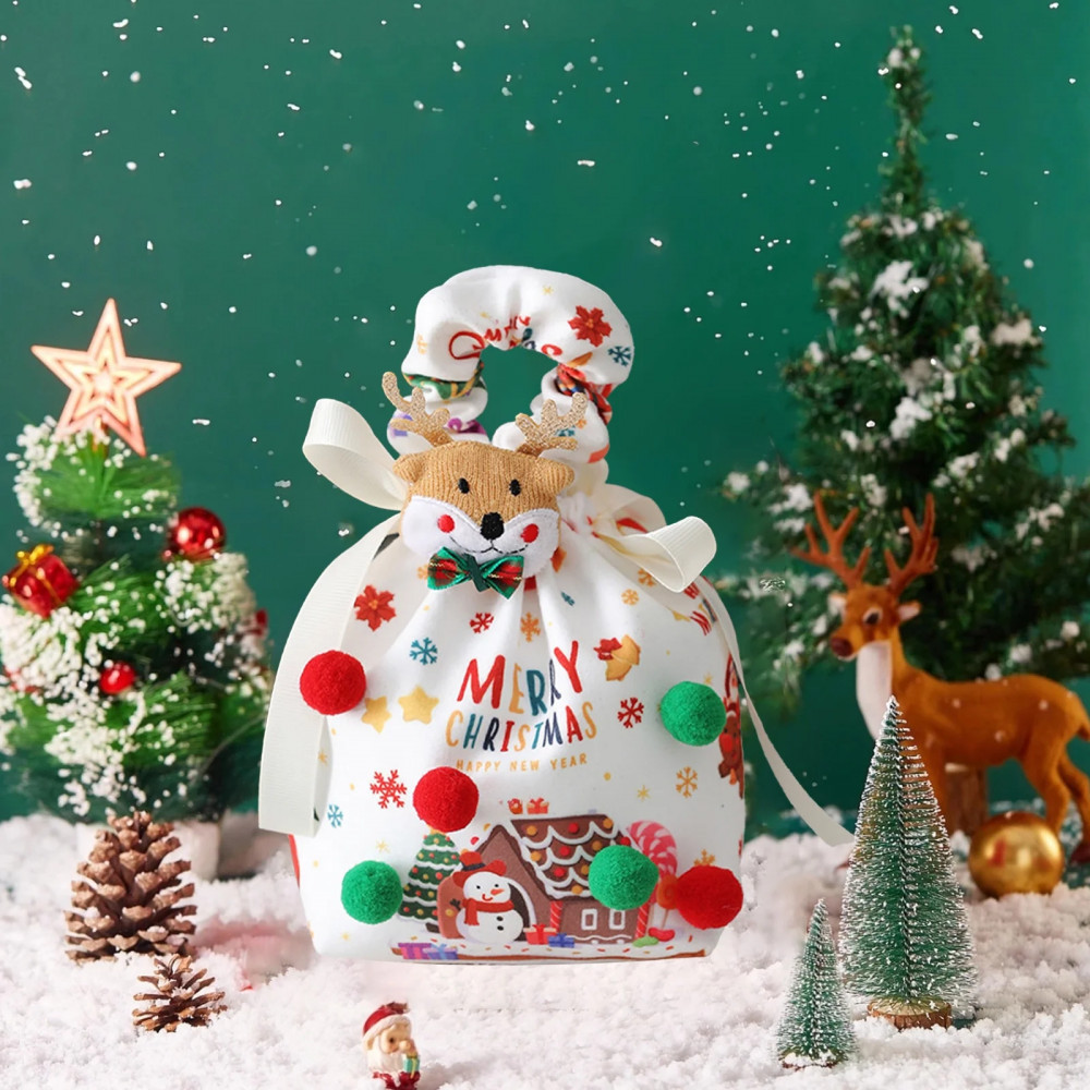 Весёлый и невероятно милый новогодний мешочек с пушистым оленёнком в зелёном бантике — настоящий хит для детских и взрослых праздников! Объёмные рожки, красный носик и яркие разноцветные помпоны делают его похожим на маленького живого Рудольфа, который только что прискакал с Северного полюса.