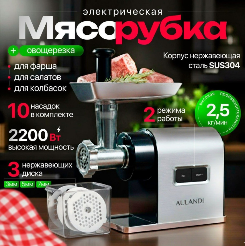 💳 Оплатить за товар можно при получении 🇰🇿 Есть бесплатная доставка по Казахстану 🎁 Копите бонусы с каждой покупки Профессиональная электрическая мясорубка MG204 создана для тех, кто ценит мощность, надежность и удобство на кухне. Усиленный мотор 2200W обеспечивает быструю переработку любых продуктов — от мягкого мяса до грудинки и жил. Корпус и решётки выполнены из нержавеющей стали SUS304, благодаря чему прибор отличается долговечностью, устойчивостью к коррозии и безопасностью для пищевых продуктов. Планетарный редуктор и металлическая шестерня гарантируют стабильную работу без перегрева, а система Reverse помогает справляться с блокировками. Мясорубка оснащена широким загрузочным лотком, удобными кнопками и прозрачным контейнером для фарша, что делает процесс приготовления простым и комфортным. В комплект входят решётки разной толщины, насадка для колбас и кеббе — всё, что нужно для разнообразных домашних блюд. |