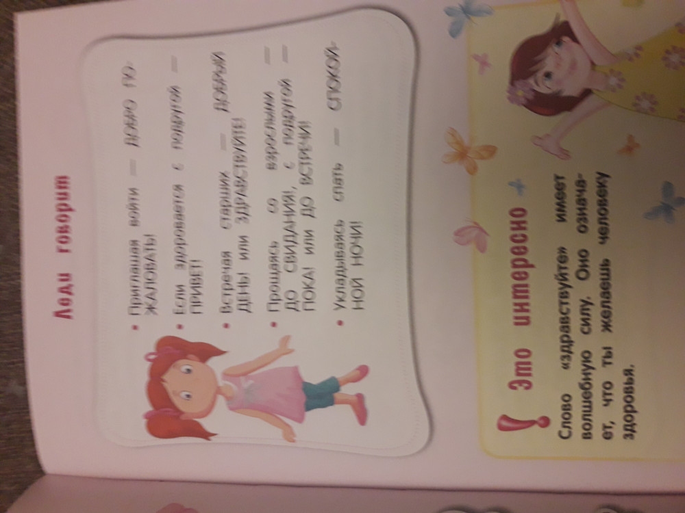 Отличная книжка для маленький принцесс и леди! Доступно объясняется,как себя вести девочкам. Есть примеры в рассказах про других девочек. Очень довольны покупкой.