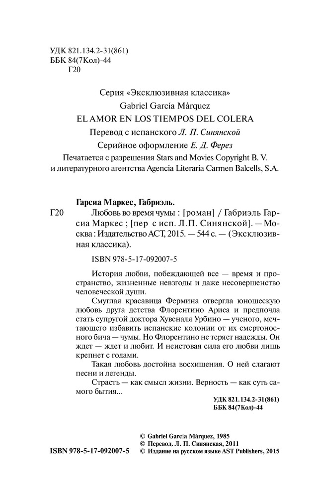 Любовь во время чумыпереплет легко читается качество удобный книга