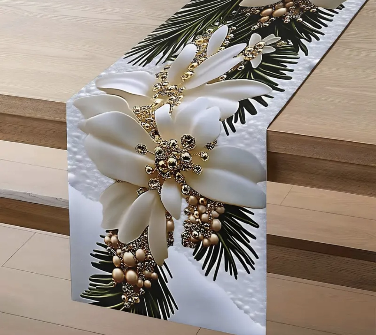 Дорожка скатерть на новогодний стол — это праздничный и функциональный элемент сервировки. Благодаря антискользящему покрытию и водоотталкивающей пропитке, дорожка не скользит, а также легко очищается от пятен и влаги.