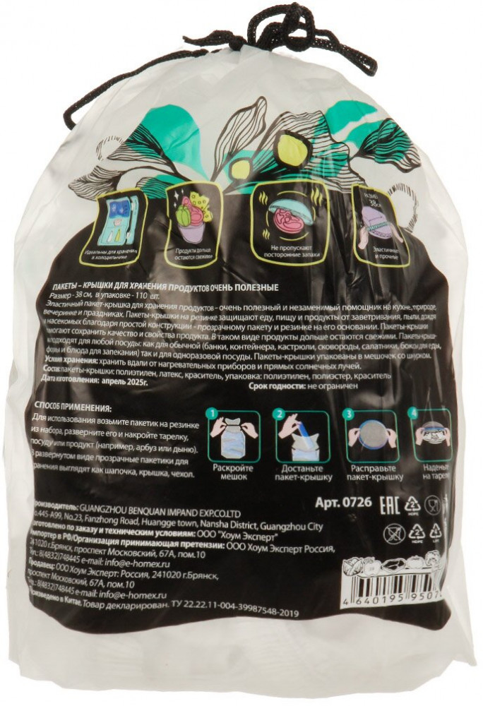 Homex Набор пакетов-крышек для хранения продуктов «Очень полезные»