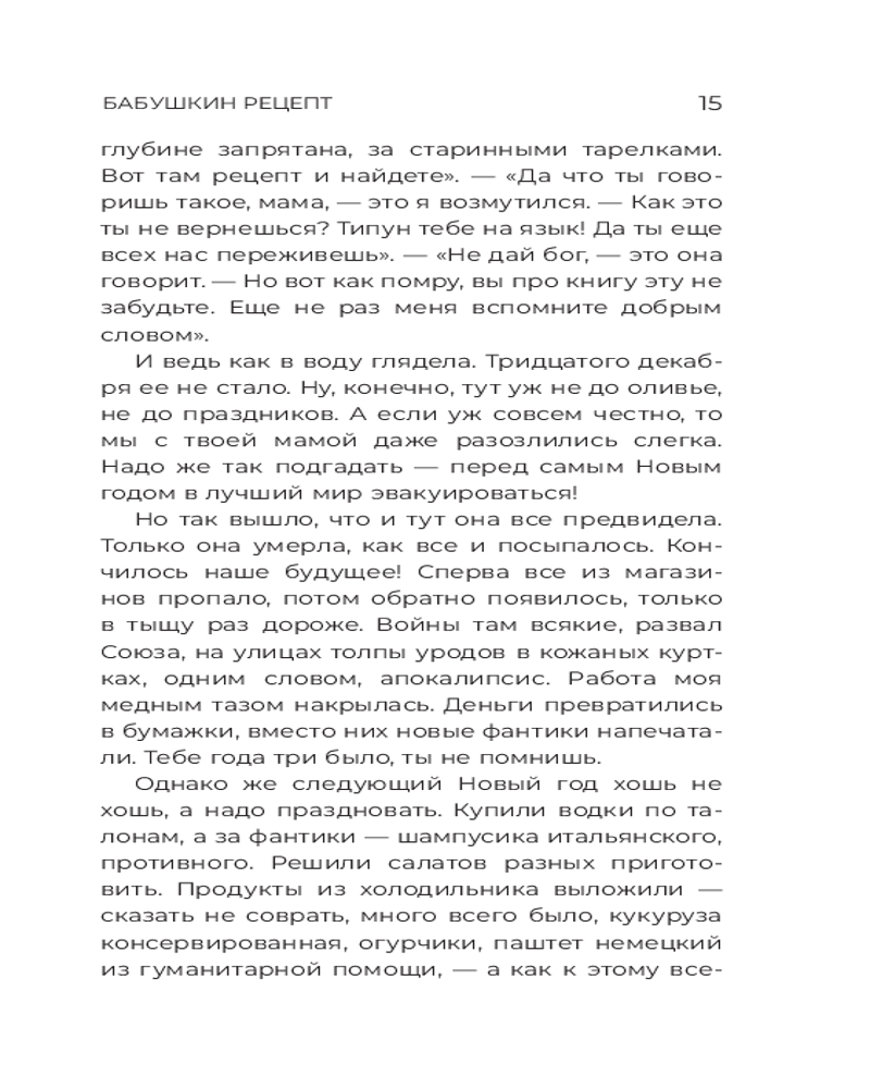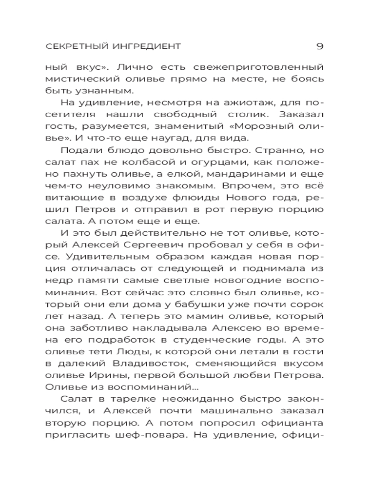 💳 Оплатить за товар можно при получении 🇰🇿 Есть бесплатная доставка по Казахстану 🎁 Копите бонусы с каждой покупки Серия: Удивительные истории В основе сборника — легендарный салат «Оливье», который объединяет в себе не только традиционные кулинарные секреты, но и богатство жизненных событий, воспоминаний и забавных ситуаций. Как при приготовлении уникального блюда, здесь собраны разнообразные «ингредиенты»: юмор, ностальгия, тепло семейных моментов, неожиданные и трогательные истории. Чтение этих рассказов — настоящий праздник для души, похожий на вкусный салат, приготовленный с любовью и мастерством. Каждый рассказ — это маленькое приключение, в котором «Оливье» — это не просто салат, а повод для встреч, разлук, а также символ дружбы и любви. |