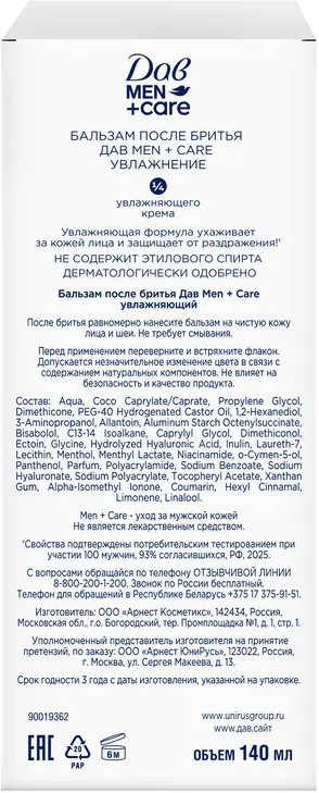 Dove Бальзам после бритья увлажняющий и успокаивающий для всех типов кожи