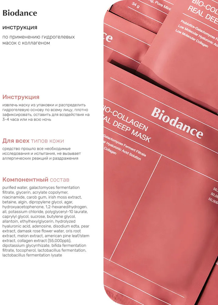 Очищенная вода, экстракт коллагена, ферментационная фильтрация микроцитов галактозы, глицерин, акрилат кофолицер, ниацинамид, кароп, экстракт ирландского гексана, хлорид калия, полигли серил-10 лаурат, каприл гликоль, сахар, бутилен глакол, алантоин, этилгексилсилицерин, экстракт западной груши, дамаск. экстракт розы, экстракт корня ириса, экстракт дыни, экстракт листьев/стеблей западной песни, ферментированная фильтрация Daipida, токоферол, ферментированные лактобактерии, ферментация лактобактерий.