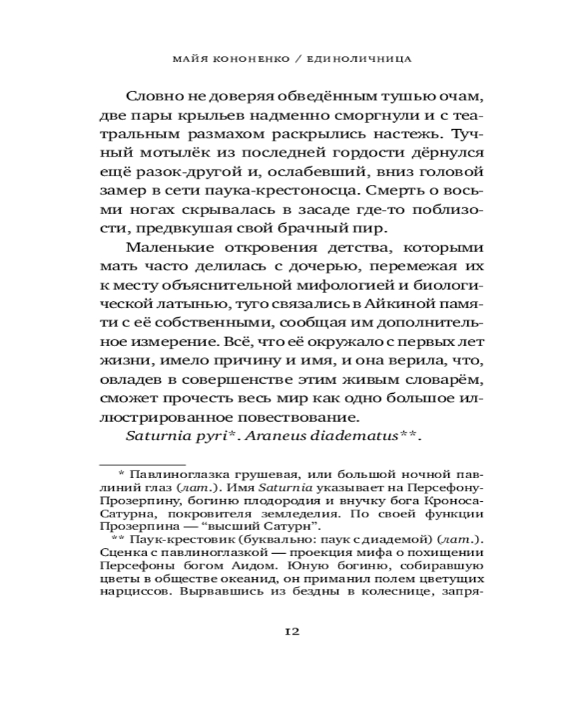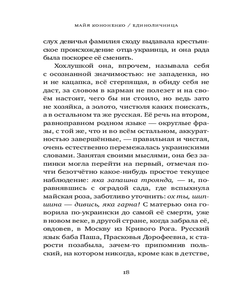 | Майя Кононенко — поэт и переводчик, эссеист, прозаик. Родилась в Алма-Ате, с девяти лет живёт в Москве. Окончила Литературный институт им. А. М. Горького и несколько курсов школы «Хороший текст». Публиковалась в журналах «Сеанс», «Звезда» и «Новый мир». |