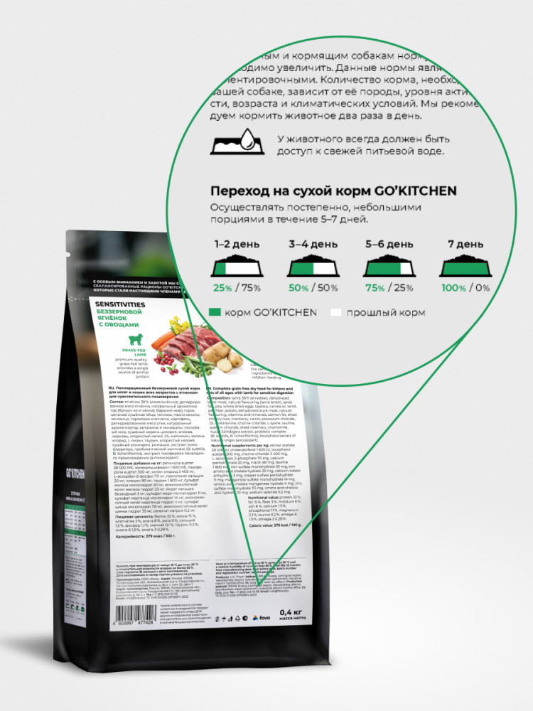 Go'kitchen Корм сухой для котят и кошек всех возрастов беззерновой с ягненком «Sensitivities Lamb»