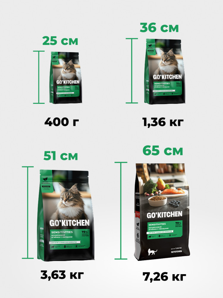 Go'kitchen Корм сухой для котят и кошек всех возрастов беззерновой с ягненком «Sensitivities Lamb»