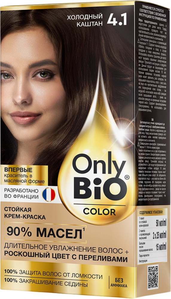 Only Bio color Крем-краска для волос стойкая «Only bio color», оттенок, 4.1 Холодный каштан