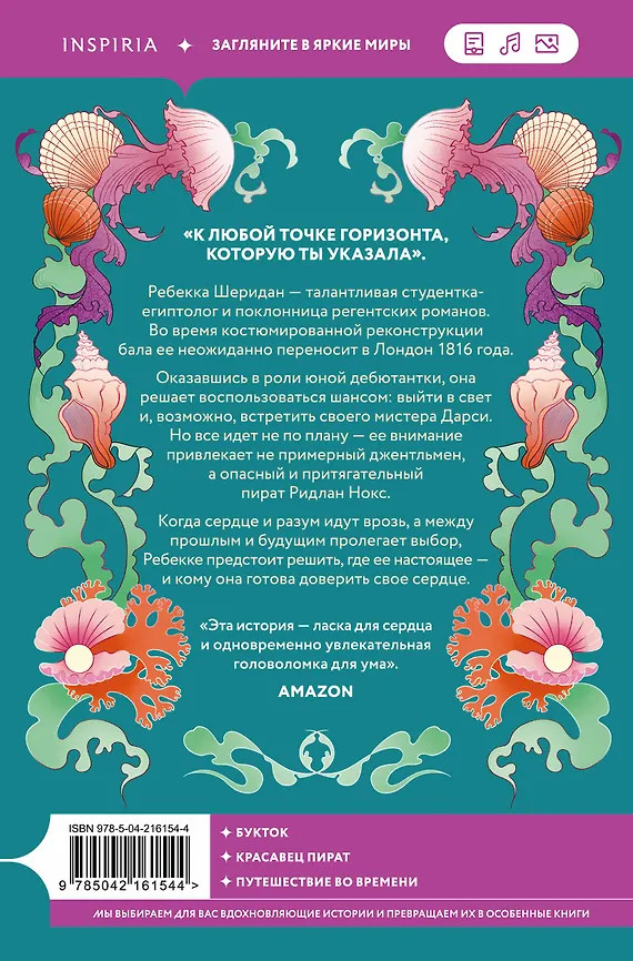 Ребекка Шеридан — талантливая студентка-египтолог и поклонница регентских романов. Во время костюмированной реконструкции бала ее неожиданно переносит в Лондон 1816 года. Оказавшись в роли юной дебютантки, она решает воспользоваться шансом: выйти в свет и, возможно, встретить своего мистера Дарси. Но все идет не по плану — ее внимание привлекает не примерный джентльмен, а опасный и притягательный пират Ридлан Нокс. Когда сердце и разум идут врозь, а между прошлым и будущим пролегает выбор, Ребекке предстоит решить, где ее настоящее — и кому она готова доверить свое сердце. |