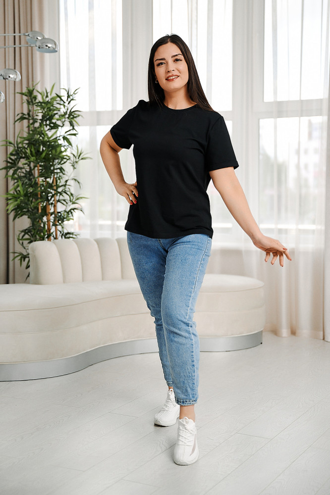 Эта футболка станет незаменимым элементом вашего гардероба благодаря идеальному сочетанию комфорта, стиля и практичности. Изготовленная из мягкого и дышащего материала, она обеспечивает приятное ощущение на коже и удобство в течение всего дня. Универсальный дизайн делает её подходящей для любого сезона и случая — будь то прогулка, работа, встреча с друзьями или активный отдых. Мягкая ткань легко стирается и сохраняет форму и цвет даже после многократных стирок.