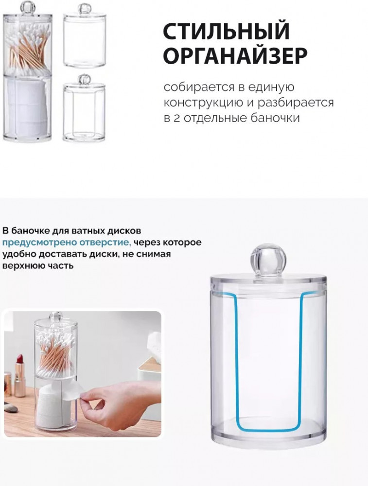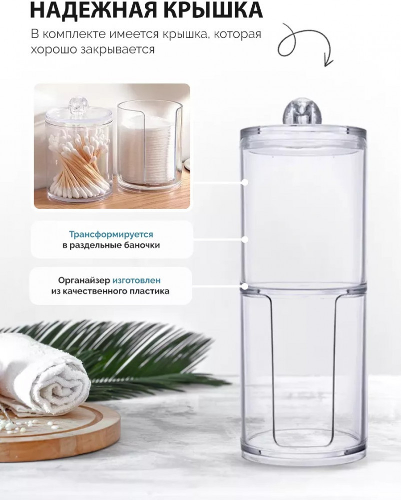 Органайзер для ватных дисков и палочекВ данный момент этот товар отсутствует в продаже. Возможно, у нас найдется аналогичный или похожий товар здесь. Удобный контейнер для хранения ватных дисков и палочек с крышкой — это идеальное решение для ванной комнаты. Прозрачный контейнер для ватных дисков и палочек с крышкой — идеальное решение для хранения ушных палочек и ваты в ванной комнате. Его емкость поможет содержать все ваши принадлежности в одном месте. Этот бокс с подставкой удобен в использовании: вы можете легко добраться до нужного предмета без лишних усилий. |