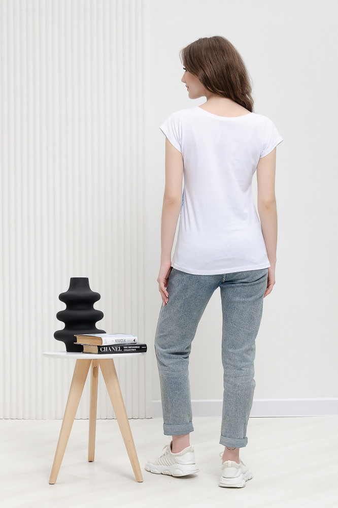 Эта футболка станет незаменимым элементом вашего гардероба благодаря идеальному сочетанию комфорта, стиля и практичности. Изготовленная из мягкого и дышащего материала, она обеспечивает приятное ощущение на коже и удобство в течение всего дня. Универсальный дизайн делает её подходящей для любого сезона и случая — будь то прогулка, работа, встреча с друзьями или активный отдых. Мягкая ткань легко стирается и сохраняет форму и цвет даже после многократных стирок.