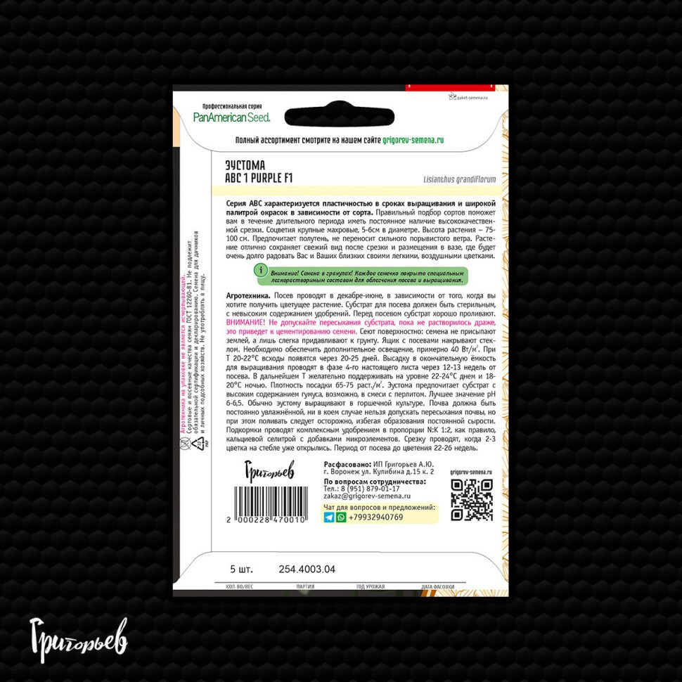 Григорьев Семена эустомы «ABC 1 Purple F1»+30