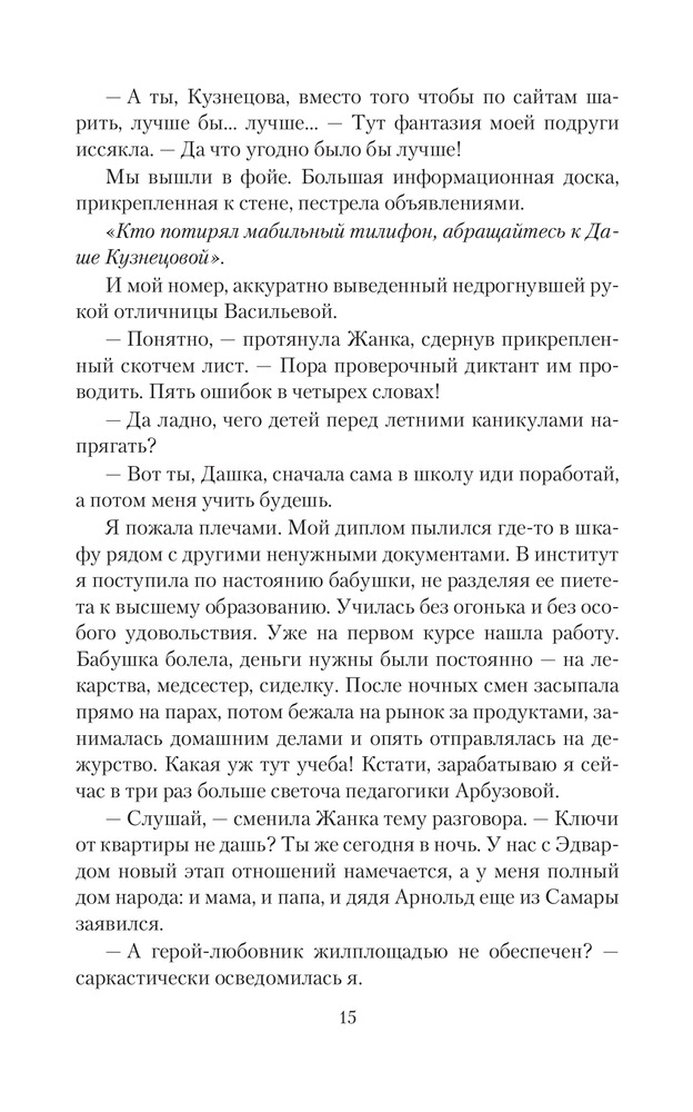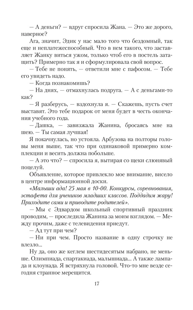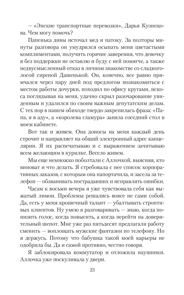 Леди Сирин Энского уездаТатьяна Георгиевна Коростышевская В данный момент этот товар отсутствует в продаже. Возможно, у нас найдется аналогичный или похожий товар здесь. Серия: Юмористическая серия Вы думаете, что феи — это такие полезные тетеньки, которые обменивают молочные зубы на блестящие монетки и существуют только в сказках? Даша Кузнецова тоже так думала до того ужасного дня, когда ей пришлось с ними познакомиться. И завертелось: пикси, ледяные демоны, паладины лета, рухи, альвы, сиды. А Даша кто? Да в принципе никто — толстушка с кучей комплексов и чарующим голосом. Ну еще, возможно, последняя сирена волшебного мира. Хотя в этом еще предстоит разобраться, переместившись в параллельный мир, влюбившись, нажив могущественных врагов и друзей, в верности которых не всегда уверена. Но она справится, потому что есть цель, есть дорога, ведущая к цели, и судьба, не позволяющая свернуть с пути. Вперед, леди Сирин, вперед! |