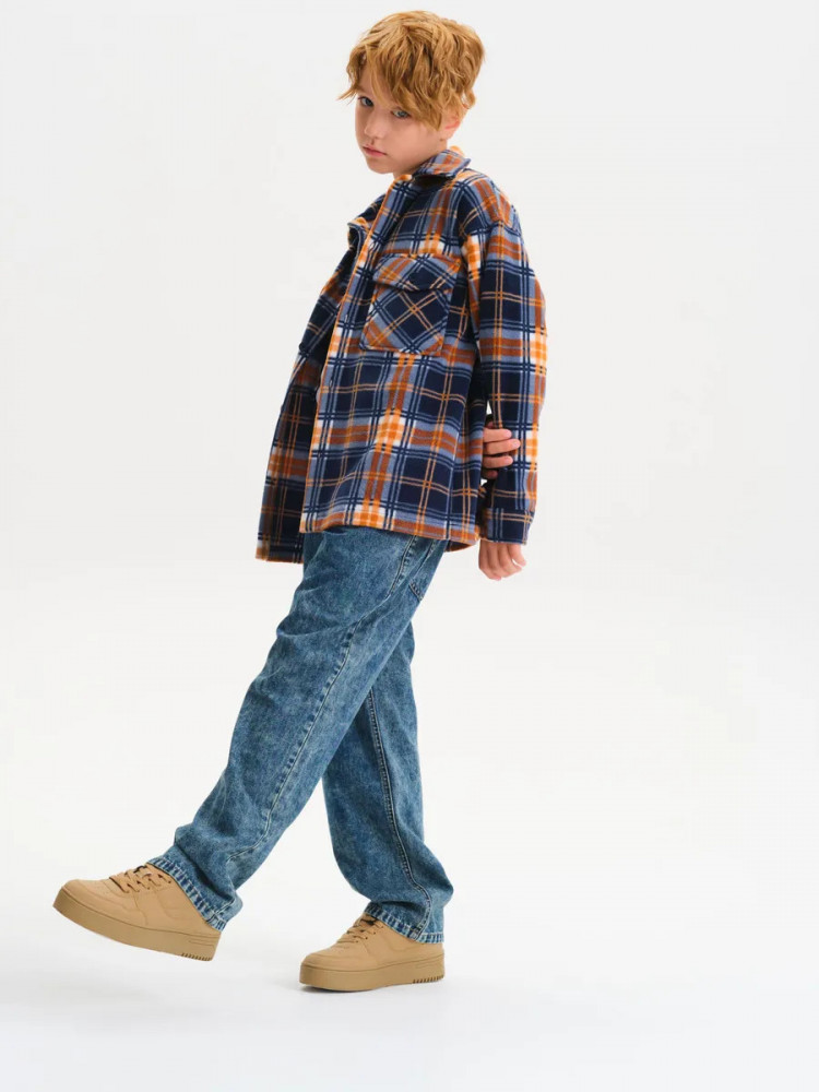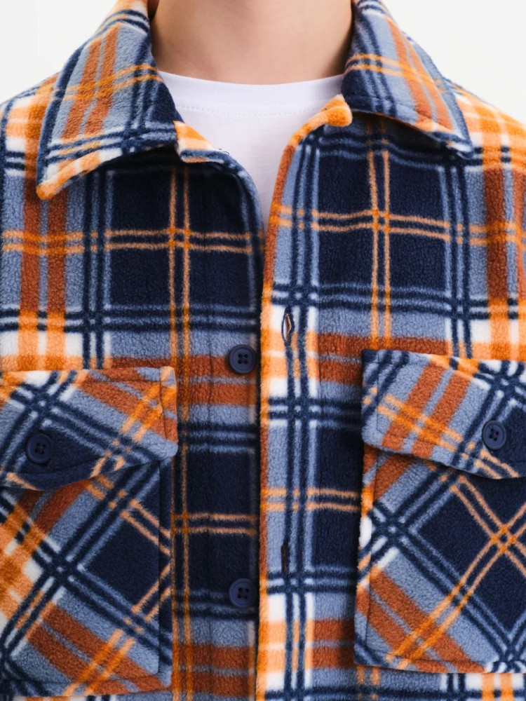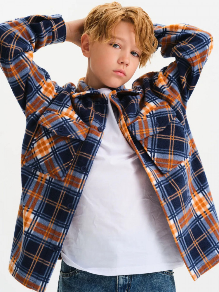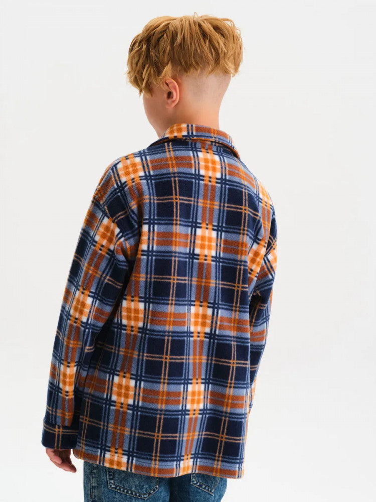 Флисовая рубашка для мальчика. Объёмная рубашка с классическим отложным воротником и спущенным плечом подарит ребёнку комфорт и станет стильным дополнением гардероба. Флисовая рубашка для мальчика. Объёмная кофта с классическим отложным воротником и спущенным плечом подарит ребёнку комфорт и станет стильным дополнением гардероба. Клетчатая утепленная рубашка оверсайз — актуальный модный тренд. Модель застёгивается на пуговицы по переду. По низу рукавов манжеты на пуговицах. По переду слева и справа накладные карманы для мелочей. Флис тёплый, мягкий, лёгкий, просто стирается и быстро сохнет, не выгорает и не скатывается, одежда из него надолго сохраняет прекрасную форму. Отлично подойдет для прохладной осенней погпды в качестве толстовки.Флисовая детская одежда подходит для любого сезона. Флисовая толстовка - это универсальная осенняя одежда для детей, которую можно использовать в качестве поддевы к комплекту верхней мембранной одежды в холодное время года. Поддева для детей сохранит тепло в самые холодные и ветреные дни. Кроме того, флисовая кофточка может быть использована как одежда на осень и весну, а также как верхняя одежда в прохладные летние вечера.
