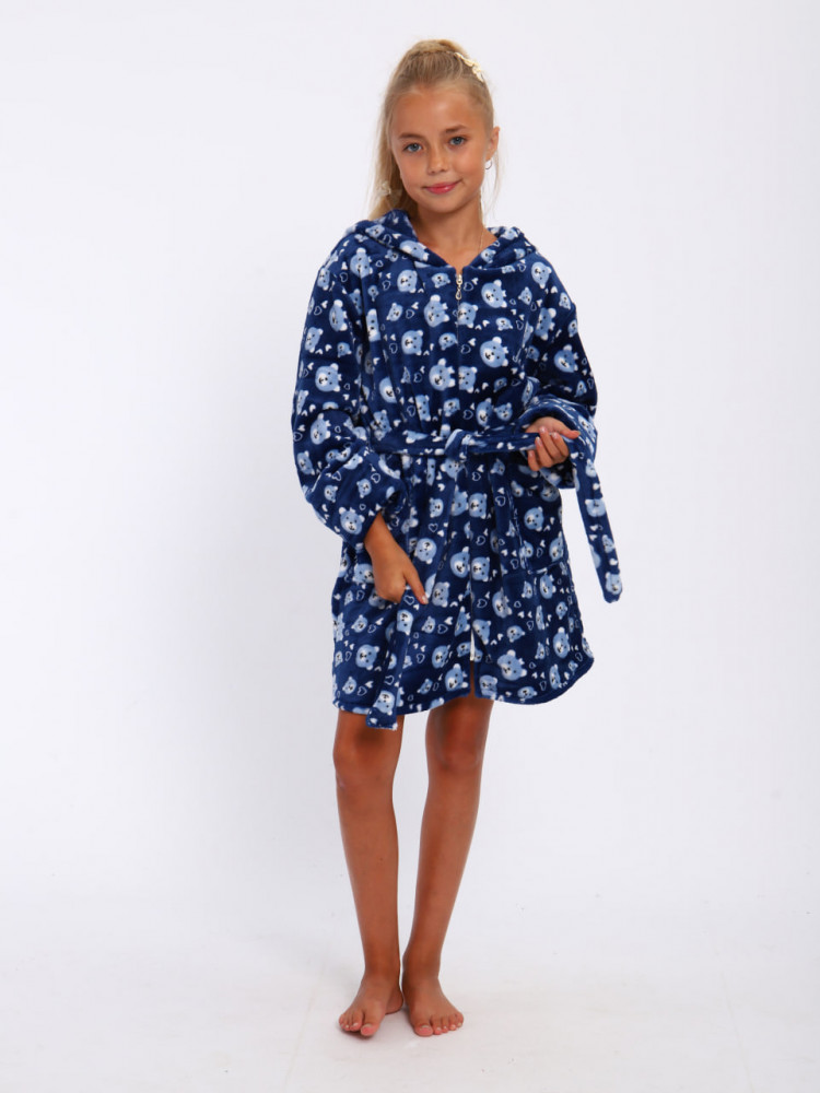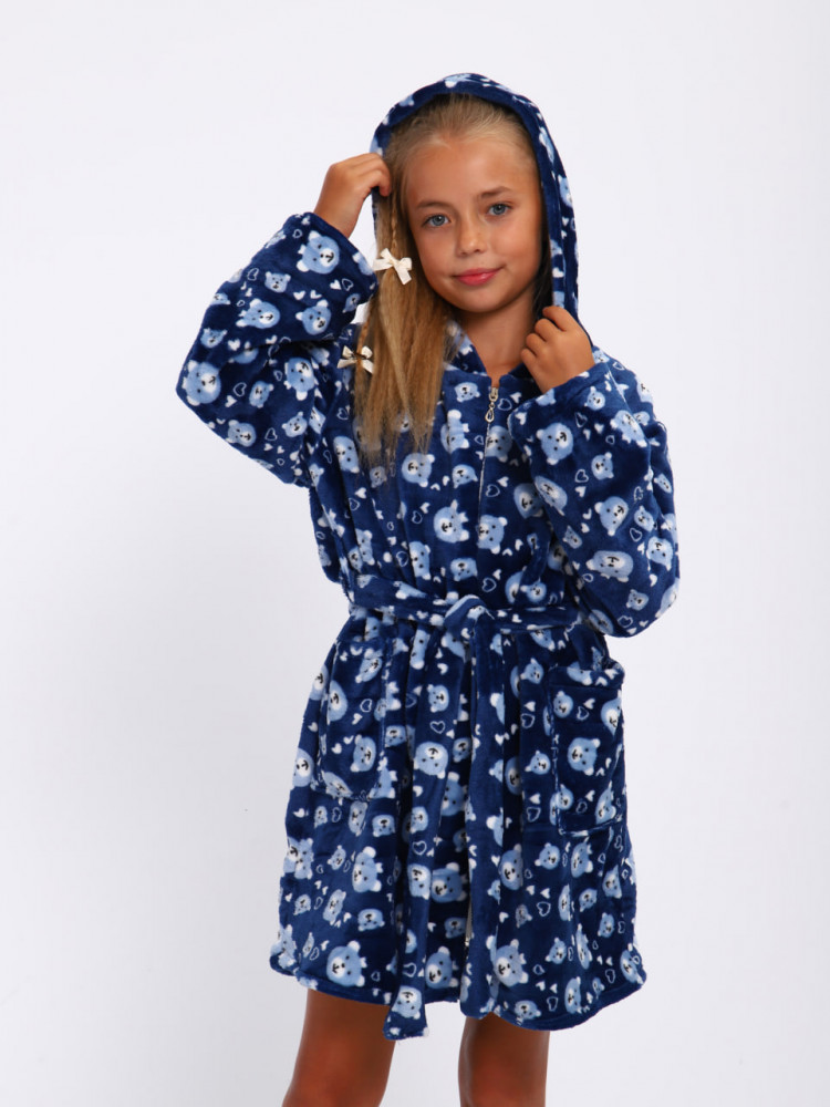 Мягкий детский халат из ткани экстрасофт подарит тепло и уют вашему малышу. Лёгкий, нежный и очень приятный на ощупь материал прекрасно сохраняет тепло и быстро сохнет, поэтому халатик удобно надевать после купания или просто дома для комфорта. Свободный крой не сковывает движений, капюшон защищает от прохлады, а пояс позволяет регулировать посадку. Яркие забавные принты делают модель ещё более привлекательной для детей и превращают её в любимую домашнюю одежду.