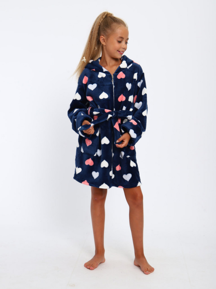 Мягкий детский халат из ткани экстрасофт подарит тепло и уют вашему малышу. Лёгкий, нежный и очень приятный на ощупь материал прекрасно сохраняет тепло и быстро сохнет, поэтому халатик удобно надевать после купания или просто дома для комфорта. Свободный крой не сковывает движений, капюшон защищает от прохлады, а пояс позволяет регулировать посадку. Яркие забавные принты делают модель ещё более привлекательной для детей и превращают её в любимую домашнюю одежду.