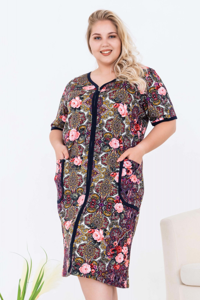 Женский халат создан для тех, кто ценит комфорт и стиль в каждом моменте. Мягкая приятная к телу ткань обеспечивает уют и легкость движений, позволяя наслаждаться домашними делами или отдыхом. Удобный крой подчёркивает естественную линию фигуры, а аккуратные детали придают изделию элегантный вид. Такой халат станет идеальным выбором для повседневного использования, утренних ритуалов или вечернего расслабления, создавая ощущение комфорта и гармонии каждый день.