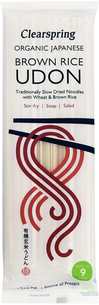 Лапша Clearspring удон из коричневого риса органическая 200 г — плотная, гладкая и удивительно насыщенная по вкусу. Производится в Японии на семейной мануфактуре, где уже третье поколение мастеров сохраняет традиции ремесленного приготовления лапши. Используется только бурый рис высшего качества, а медленная сушка при низких температурах позволяет добиться фирменной упругой текстуры коси. Благодаря естественному вкусу и плотной структуре такая лапша идеально подходит для подачи в любое время года: в горячих бульонах, ароматных стир-фраях или лёгких салатах с лапшой.