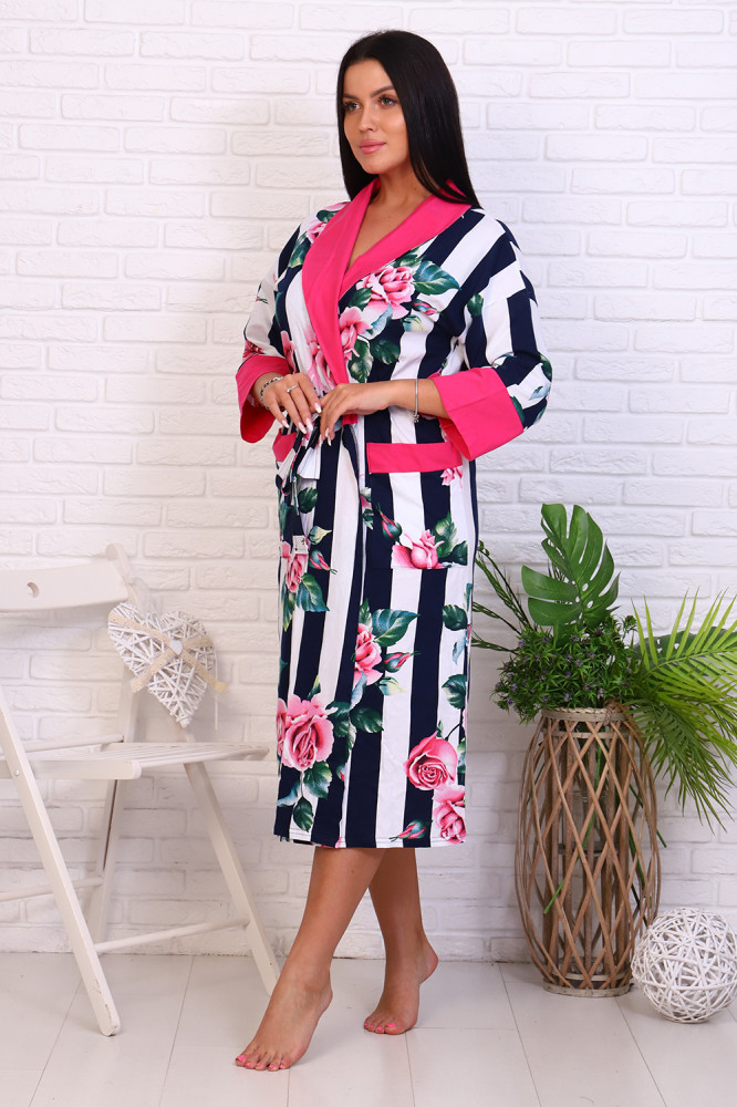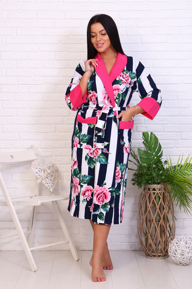 Женский халат создан для тех, кто ценит комфорт и стиль в каждом моменте. Мягкая приятная к телу ткань обеспечивает уют и легкость движений, позволяя наслаждаться домашними делами или отдыхом. Удобный крой подчёркивает естественную линию фигуры, а аккуратные детали придают изделию элегантный вид. Такой халат станет идеальным выбором для повседневного использования, утренних ритуалов или вечернего расслабления, создавая ощущение комфорта и гармонии каждый день.
