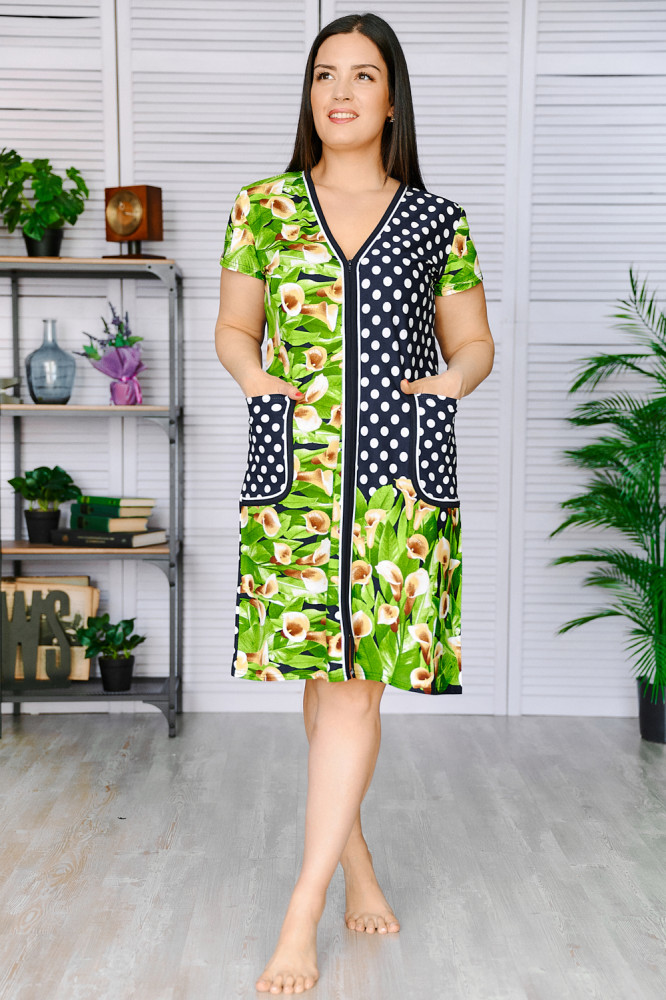 Женский халат создан для тех, кто ценит комфорт и стиль в каждом моменте. Мягкая приятная к телу ткань обеспечивает уют и легкость движений, позволяя наслаждаться домашними делами или отдыхом. Удобный крой подчёркивает естественную линию фигуры, а аккуратные детали придают изделию элегантный вид. Такой халат станет идеальным выбором для повседневного использования, утренних ритуалов или вечернего расслабления, создавая ощущение комфорта и гармонии каждый день.