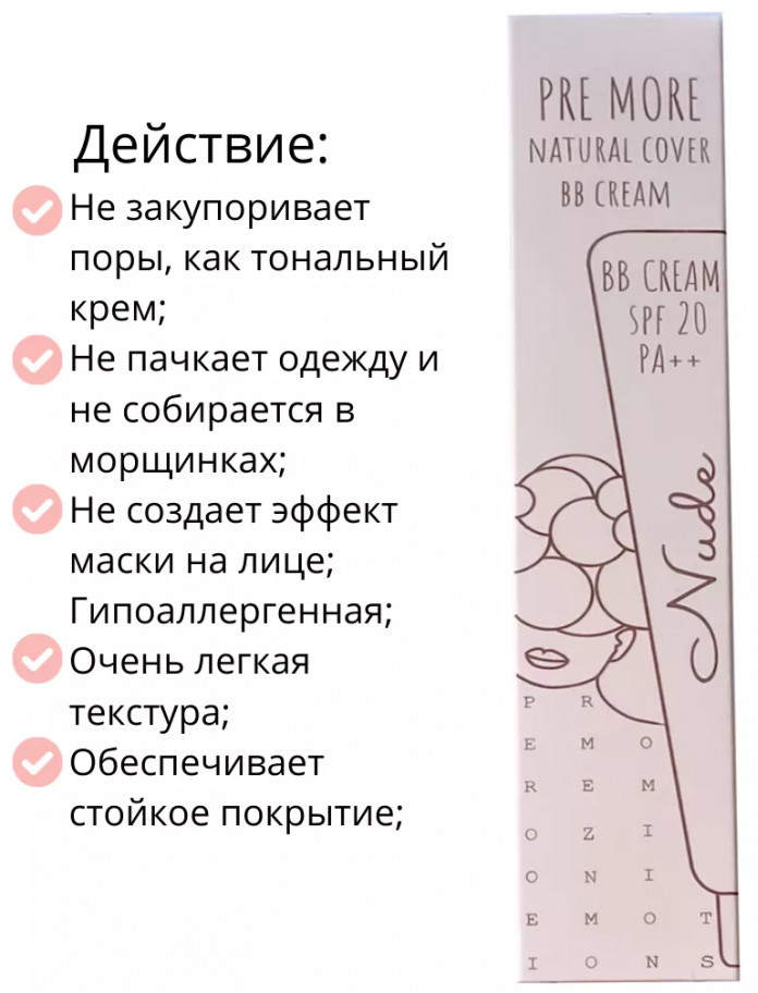 Pre More BB-крем для лица SPF 20 «Natural Cover», оттенок Nude
